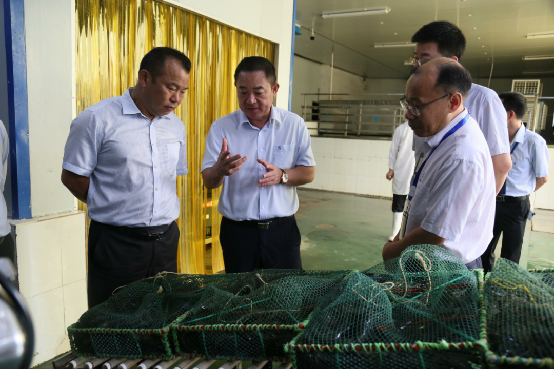 良之隆朱長良先生和良之隆研發(fā)中心負(fù)責(zé)人徐亮先生抵達(dá)翔泰公司后,在翔泰董事長劉榮杰及相關(guān)人員帶領(lǐng)下參觀化驗(yàn)室、一樓展示廳、工廠及飼料廠以及熟蝦生產(chǎn)。